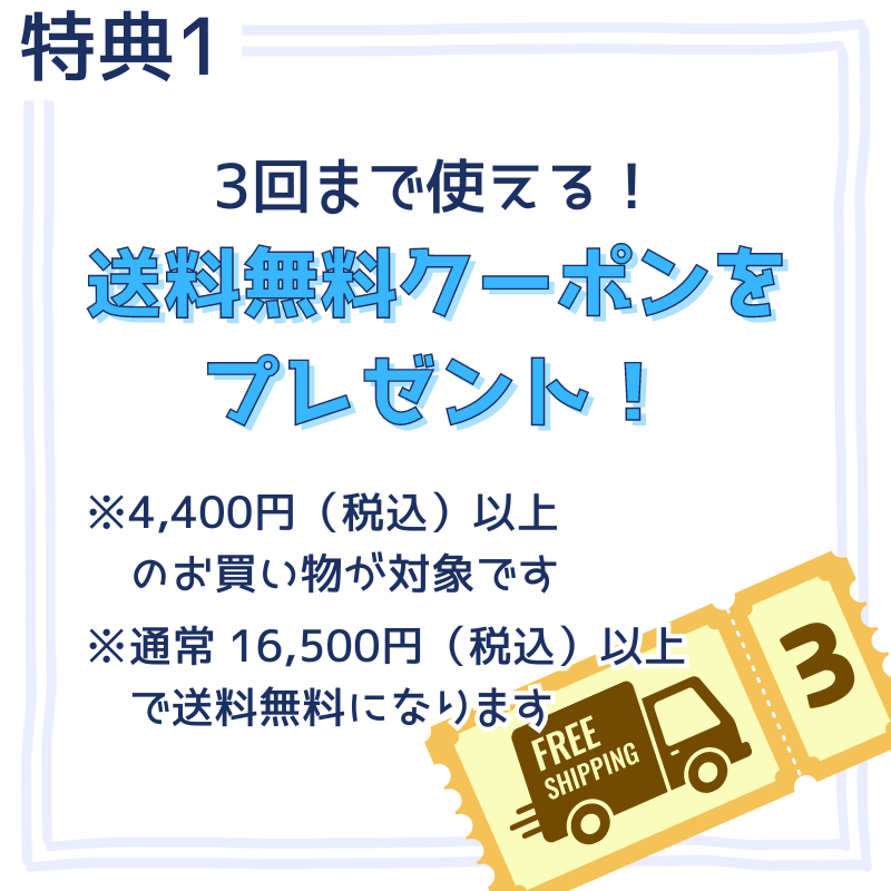 送料無料クーポンのクーポンコードは下記のリンクからご確認できますので、次回以降のお買い物からお使いください。