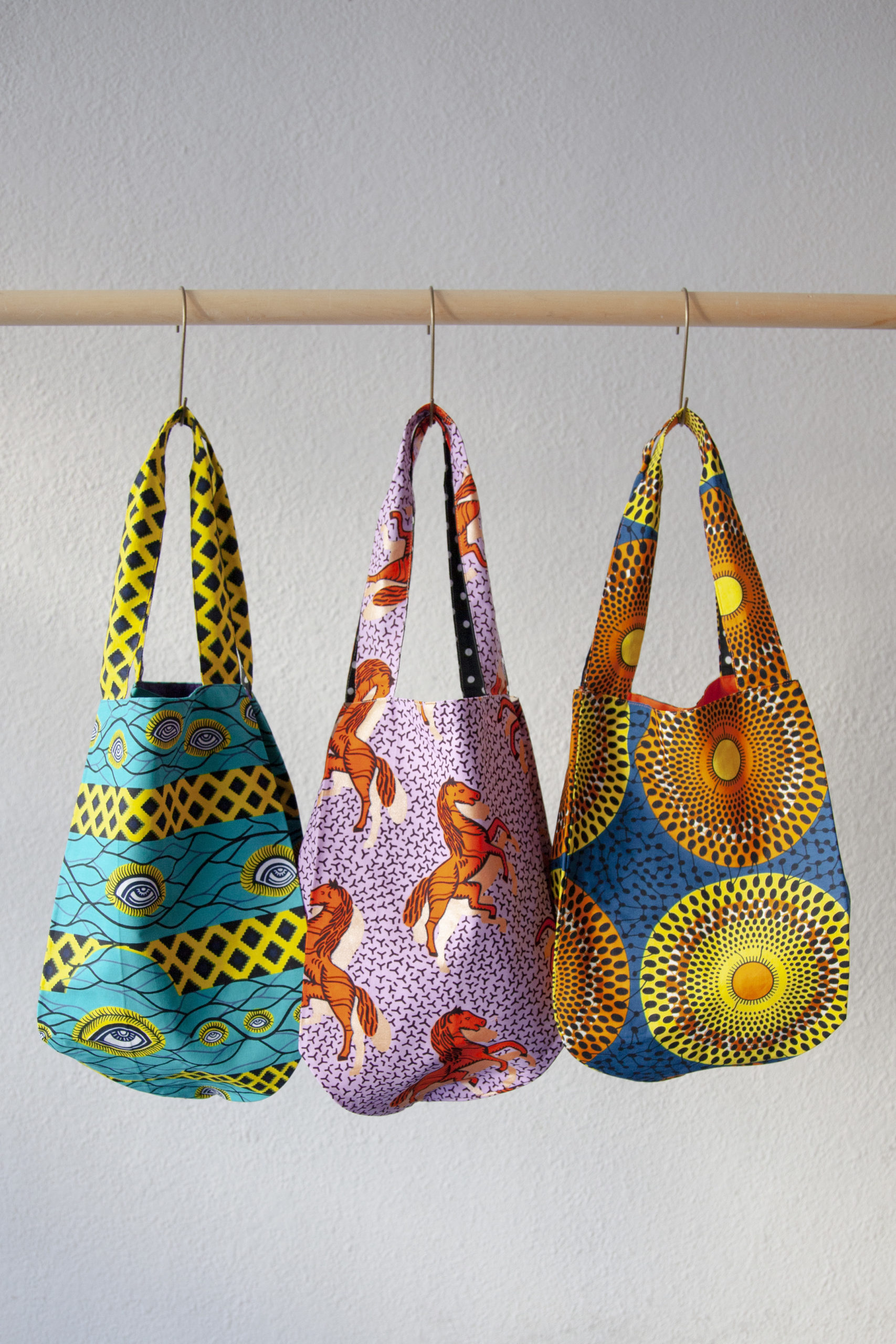 太陽の光を浴びて、風をはらんで揺れるアフリカンプリント。